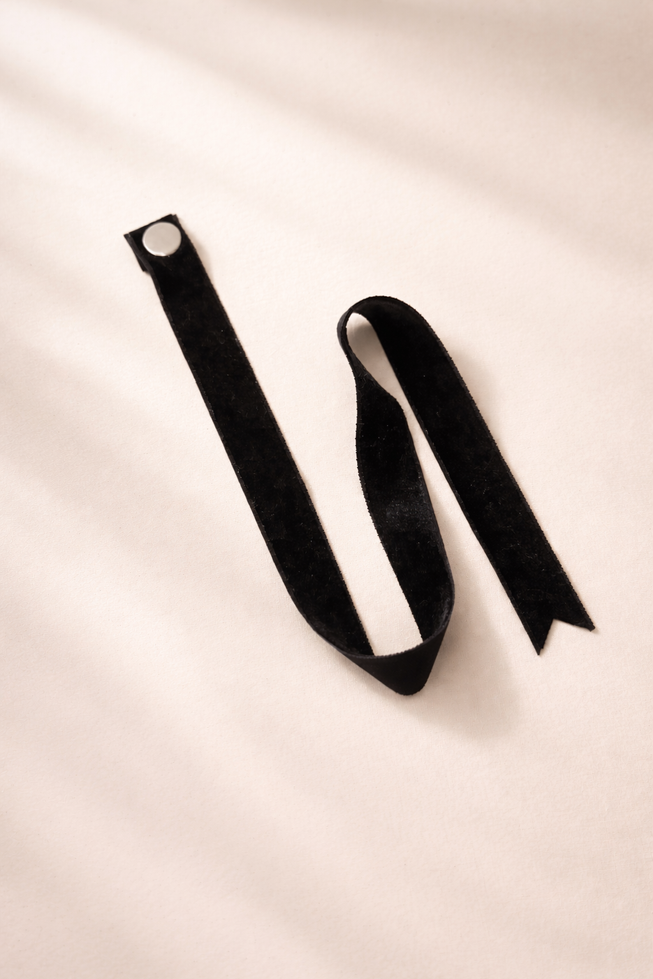 Attached with a silver button, the thread can be easily fixed to the cappa piece and removed whenever you wish.Wear it tied in a soft knot for a subtle detail, or let it fall freely for a more effortless look.